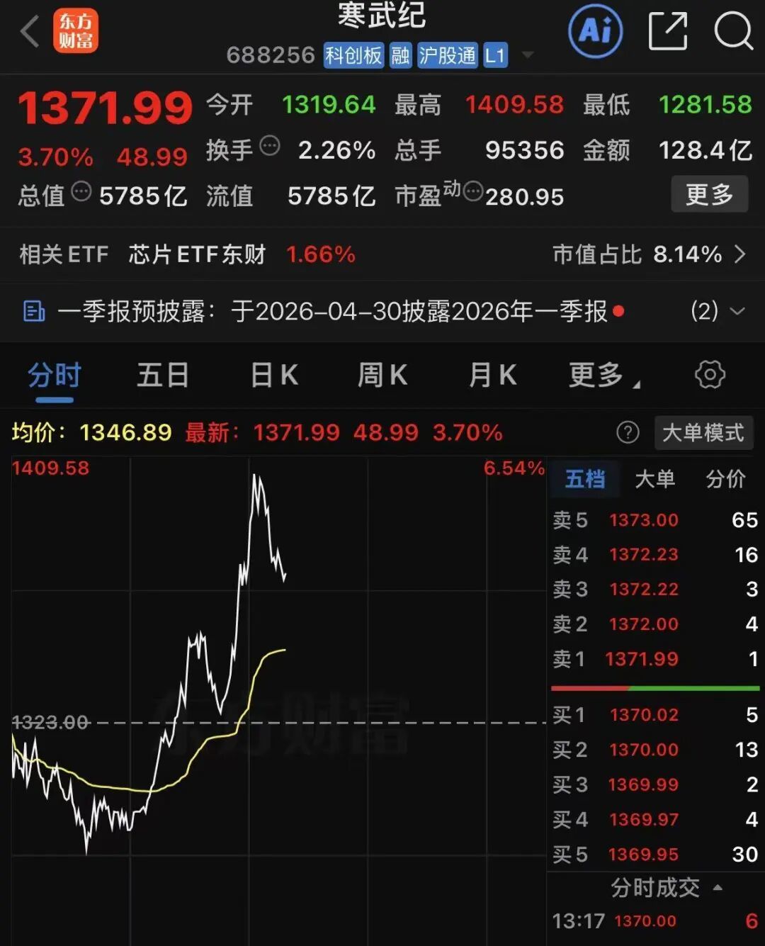 消息面上,寒武纪在官方微信号宣布,已基于vLLM推理框架完成对深度求索公司最新开源模型285B DeepSeek-V4-Flash和1.6TDeepSeek-V4-Pro的Day 0适配,适配代码已开源到GitHub社区。